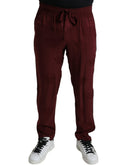Dolce & Gabbana Maroon Crown Pattern Silk Pajama Pants