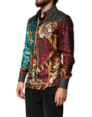 Dolce & Gabbana Multicolor Tiger Leopard Print Silk Men Shirt
