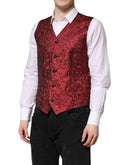 Dolce & Gabbana Red Floral Brocade Formal Men Waistcoat Vest