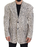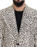 Dolce & Gabbana White Leopard Single Breasted Coat Blazer