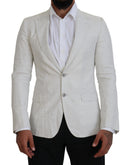 Dolce & Gabbana White Linen Slim Fit Jacket Blazer