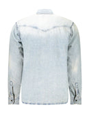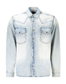 LONG SLEEVED JEANS SHIRT, ITALIAN COLLAR, 1 BUTTON CUFFS, 2 POCKETS, AUTOMATIC, LOGO