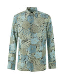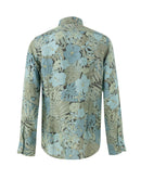 Tom Ford Light Blue Floral Print Shirt. Front button fastening, regular collar without buttons, slightly rounded at the bottom, regular fit. Allover light blue/multicolor flower print.