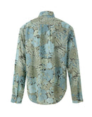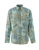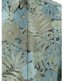 Tom Ford Light Blue Floral Print Shirt. Front button fastening, regular collar, side pocket, slightly rounded at the bottom, regular fit. Allover light blue/multicolor flower print.