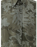 Tom Ford Green Floral Print Shirt. Front button fastening, regular collar, side pocket, slightly rounded at the bottom, regular fit. Allover green floral print.