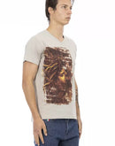 Elevate your casual wardrobe with the Trussardi Action Beige V-Neck T-Shirt. Crafted for the trendsetters, this piece features a subtle front print that adds a touch of sophistication to the classic short-sleeve silhouette. Perfect for those seeking a blend of comfort and high-style, this T-shirt embodies confidence and modern flair. Don’t just wear it—make a statement.