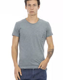 Elevate your wardrobe with a touch of Italian sophistication. The Trussardi Action T-shirt, crafted from a premium blend of cotton and viscose, promises comfort without sacrificing style. Its unique chest pocket print adds a distinct edge, making it perfect for the modern trendsetter. In a versatile gray hue, it’s a must-have staple for your fashion-forward ensemble.