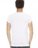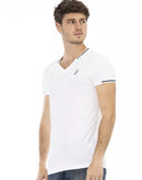 Unleash your inner trendsetter with the Trussardi Action short sleeve T-shirt, a blend of comfort and iconic style. This white V-neck tee, emblazoned with an eye-catching chest print, offers a bold fashion statement that resonates with the dynamic nature of today’s streetwear culture. Made with a mix of premium cotton and viscose, it’s crafted for those who dare to stand out. Elevate your everyday look with a touch of Italian finesse.