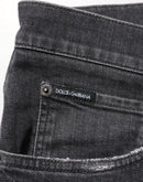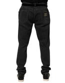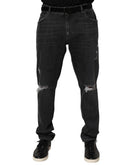 Dolce & Gabbana Black Cotton Slim Fit Distressed Ripped Logo Jeans