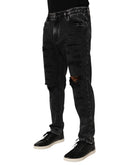 Dolce & Gabbana Black Washed Ripped Loose Cotton Denim Jeans