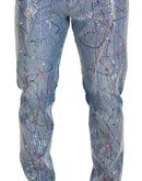 Dolce & Gabbana Blue Cotton Color Splash Print Denim Jeans