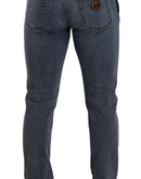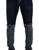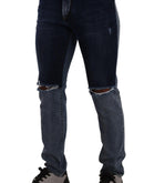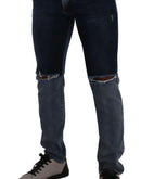 Dolce & Gabbana Blue Two Tone Tattered Cotton Slim Denim Jeans