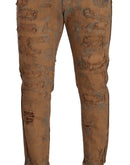 Dolce & Gabbana Brown Distressed Cotton Regular Denim Jeans