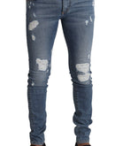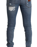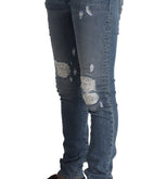 Dolce & Gabbana Light Blue Tattered Cotton Denim Skinny Jeans
