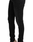 Acht Black Denim Cotton Bottoms Slim Fit Jeans