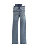 The Elson Jeans by Agolde features a relaxed straight-leg silhouette crafted from double-waisted dark and medium indigo denim. Made from rigid, non-stretch regenerative cotton, it delivers a structured yet comfortable feel. Subtle fading, marbling, and whiskering details give it a naturally worn-in character. A versatile piece, ideal for pairing with fitted tops or layered knits for a balanced and effortless look.