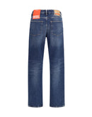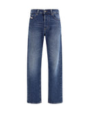 The 1988 D-Ark regular Jeans by Diesel feature a loose fit with a regular waist and straight leg. The design is defined by a cut waist and frayed pocket details, adding a bold touch to the look. Made from slightly stretch recycled cotton, this comfort denim comes in a dark blue medium-treated wash with a subtly worn-in finish, part of Diesel’s signature DNA selection.