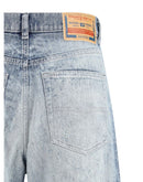 The 1971 D-Sent regular Jeans by Diesel feature a regular fit with straight legs and a high waist, designed with a V-shaped front construction that enhances a feminine yet comfortable silhouette. Crafted from 100% cotton light blue denim inspired by Japanese honeycomb fabrics, the jacquard texture is enriched with stonewash treatments, sprayed bleach effects, and laser technology. Floating threads and natural abrasions complete the distressed finish of this runway-inspired wash. Finished with a button fly.