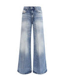 The 1978 D-Akemi blue Jeans by Diesel feature a classic bootcut design that flares towards the hem, ensuring both freedom of movement and an elegant look. The high waist enhances the silhouette, offering comfort and a refined, effortlessly stylish appearance.