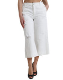 Dolce & Gabbana Wide Leg White Cotton Cropped Denim Jeans