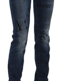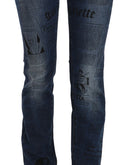 John Galliano Blue Newspaper Print Low Waist Skinny Denim Pants