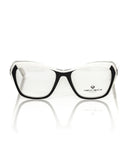 Revitalize your look with the bold aesthetics of Frankie Morello’s cat-eye eyeglasses. Crafted for the chic and the trendsetting, these glasses boast a striking black frame with a contemporary twist of white and transparent accents. Perfect for the confident woman ready to make a statement with her eyewear. Delight in the exceptional quality of Italian design with every glance.
