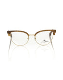 Indulge in the epitome of sophistication with Frankie Morello’s Clubmaster eyeglasses. These frames are an homage to classic style with a trendy twist, featuring a rich brown profile that shimmers subtly with glitters. Crafted in Italy, they are a statement piece that seamlessly fuses traditional aesthetics with contemporary glitz. Perfect for the fashion-forward individual looking to add a dash of glamour to their everyday look.