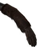 Dolce & Gabbana Brown Elbow Length Mittens Leather Fur Gloves