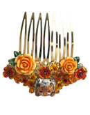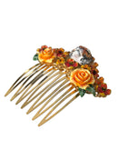 Dolce & Gabbana Gold Brass Crystal Leopard Floral Hair Comb