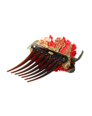 Dolce & Gabbana Red Silk Floral Gold Brass Women Hair Comb