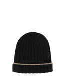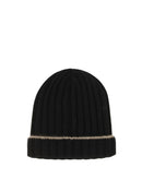 Beanie Hat by Brunello Cucinelli, made of fine cashmere with ribbed knitting. The monochrome design is enriched with contrasting profiles, a refined detail that expresses the discreet elegance of the brand. An essential and sophisticated accessory, ideal for completing winter looks with comfort and style.
