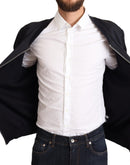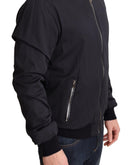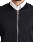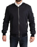 Dolce & Gabbana Blue Silk Coat Short Bomber Men Jacket