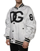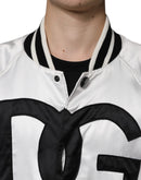Dolce & Gabbana White Polyester Logo Full Zip Bomber Jacket
