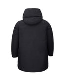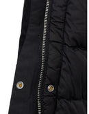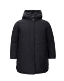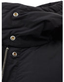 ADD Reversible Long Padded Jacket in black. Front zipper and covered button fastening, two side pockets closed with covered snap button, medium length, rounded at bottom. High collar with exposed buttons and hood. The garment is fully reversible, second part with visible padding. Item Sku: 6AW5108. Composition: 100% Polyamide-Sku inside:23OT106