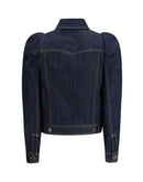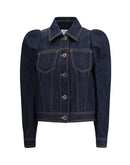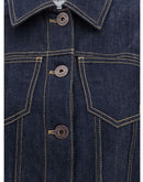 This dark blue Denim Jacket blends a modern cut with classic tailoring details. Pointed shoulders and contrast stitching create a structured effect, while the Italian collar and two patch chest pockets add a refined touch. The front button closure completes the design, making it a versatile piece perfect for casual-chic outfits
