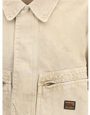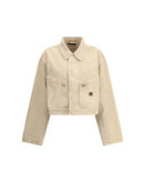 Balenciaga’s Workwear crop Jacket reinterprets workwear with a modern and sophisticated twist. Featuring a classic collar, zipper front closure and snaps, it has two zippered patch pockets and a mini logo patch on the front. The worn-in design gives the garment an authentic and contemporary allure, ideal for those seeking style and functionality.