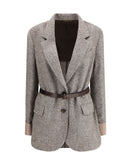 The patterned wool Jacket by Brunello Cucinelli combines refined tailoring with contemporary comfort. Featuring a single-breasted front, classic lapels, two lower patch pockets, and structured cuffs, the design offers a relaxed yet elegant silhouette. Crafted from premium patterned wool, the fabric enhances depth and texture, embodying the timeless sophistication and artisanal spirit of the Solomeo atelier.