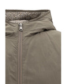Brunello Cucinelli’s reversible Down Jacket is a functional and sophisticated piece with a hood and front zipper and snap closure. The two side welt pockets offer practicality, while the side slits add a touch of originality. One side of the down jacket is made of fabric, while the other side is made of nylon to offer versatility and comfort. The padded and quilted design provides warmth and style for any occasion.