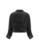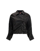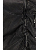 The cuir-bouilli belted Jacket by Diesel, featured in the Fall/Winter 2025 runway collection, redefines the classic biker jacket through an experimental and daring approach. Crafted from black leather treated with a “boiled” technique, it showcases a three-dimensional texture that dramatically distorts and wrinkles the silhouette. The asymmetric two-way zip closure and waist belt emphasize a bold, modern aesthetic, while the zipped pockets complete the look with functional edge.