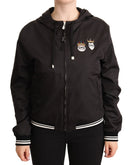 Dolce & Gabbana Black Polyester Hooded Bomber Full Zip Jacket