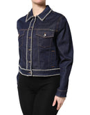 Dolce & Gabbana Blue Denim Cotton Crystal Embellished Jacket