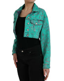 Dolce & Gabbana Green Cotton Tie Dye Cropped Cropped Denim Jacket
