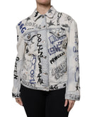 Dolce & Gabbana Light Blue Graffiti Button Down Denim Jacket