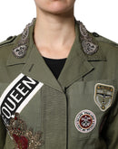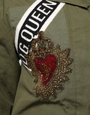 Dolce & Gabbana Military Green Queen Embellished Coat Jacket