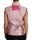 Dolce & Gabbana Pink Zippered Lamb Sleeveless Vest Leather Jacket
