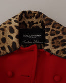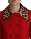 Dolce & Gabbana Red Leopard Wool Trenchcoat Jacket