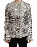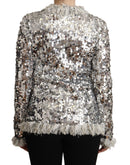Dolce & Gabbana Silver Sequined Shearling Long Sleeves Jacket