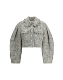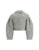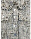 GANNI’s signature cotton Summer Jacket with a cropped cut and contemporary character. The model features a classic collar enriched with bangs applied along the perimeter, which give an original and dynamic touch. The front closure is with buttons, while the garment is completed with two side welt pockets and two slit pockets with flap applied on the front. Perfect for enriching casual looks with a distinctive detail.