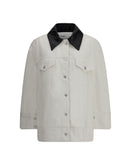 The Denim Jacket by Givenchy presents a classic leather collar and an oversized, contemporary silhouette. On the back, the denim appliqué with the logo adds an iconic detail. The front button closure with engraved Givenchy buttons, buttoned cuffs, and two chest flap pockets complete the design with a distinctive, urban touch.