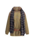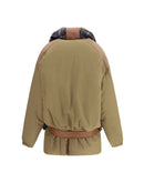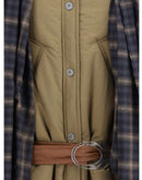 The Amy Jacket by Marbell is crafted from padded technical fabric with quilted details, a high collar, and front snap-button closure. It features functional pockets, long sleeves with elastic cuffs, and dropped shoulders for optimal comfort. The design is completed by a removable scarf and a removable faux-leather fabric belt, making the piece versatile and modern.
